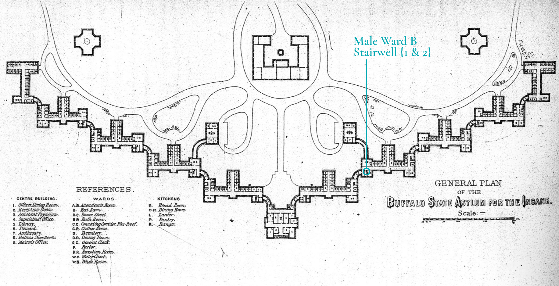 Male Ward B, Stairwell between 1 & 2 Map