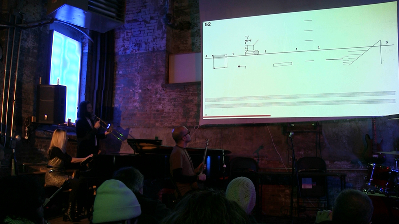 Melissa Grey & David Morneau and Saman Samadi performing page 56 of Cornelius Cardew's 'Treatise' at Spectrum NYC.