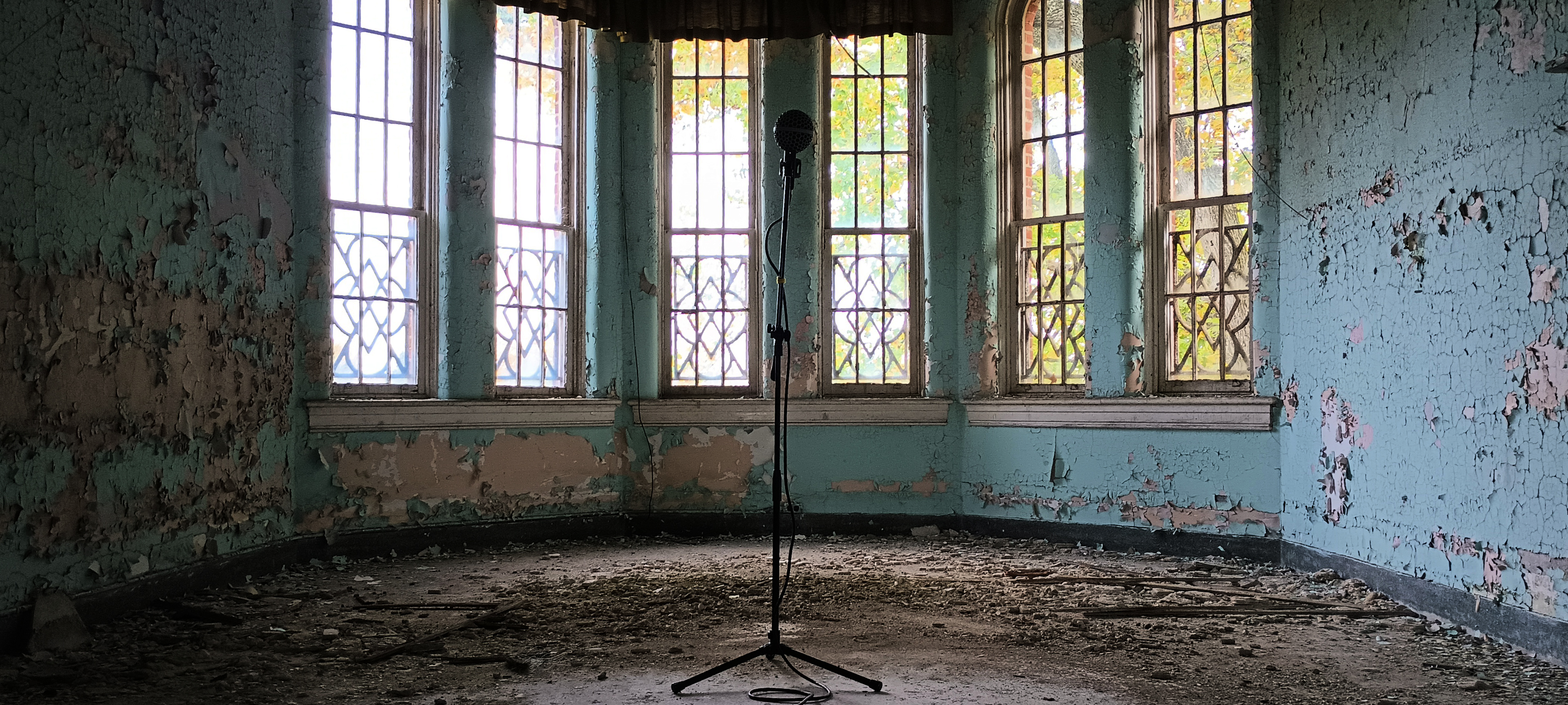 Microphone set up in Building 2, Parlor 311, north-facing view