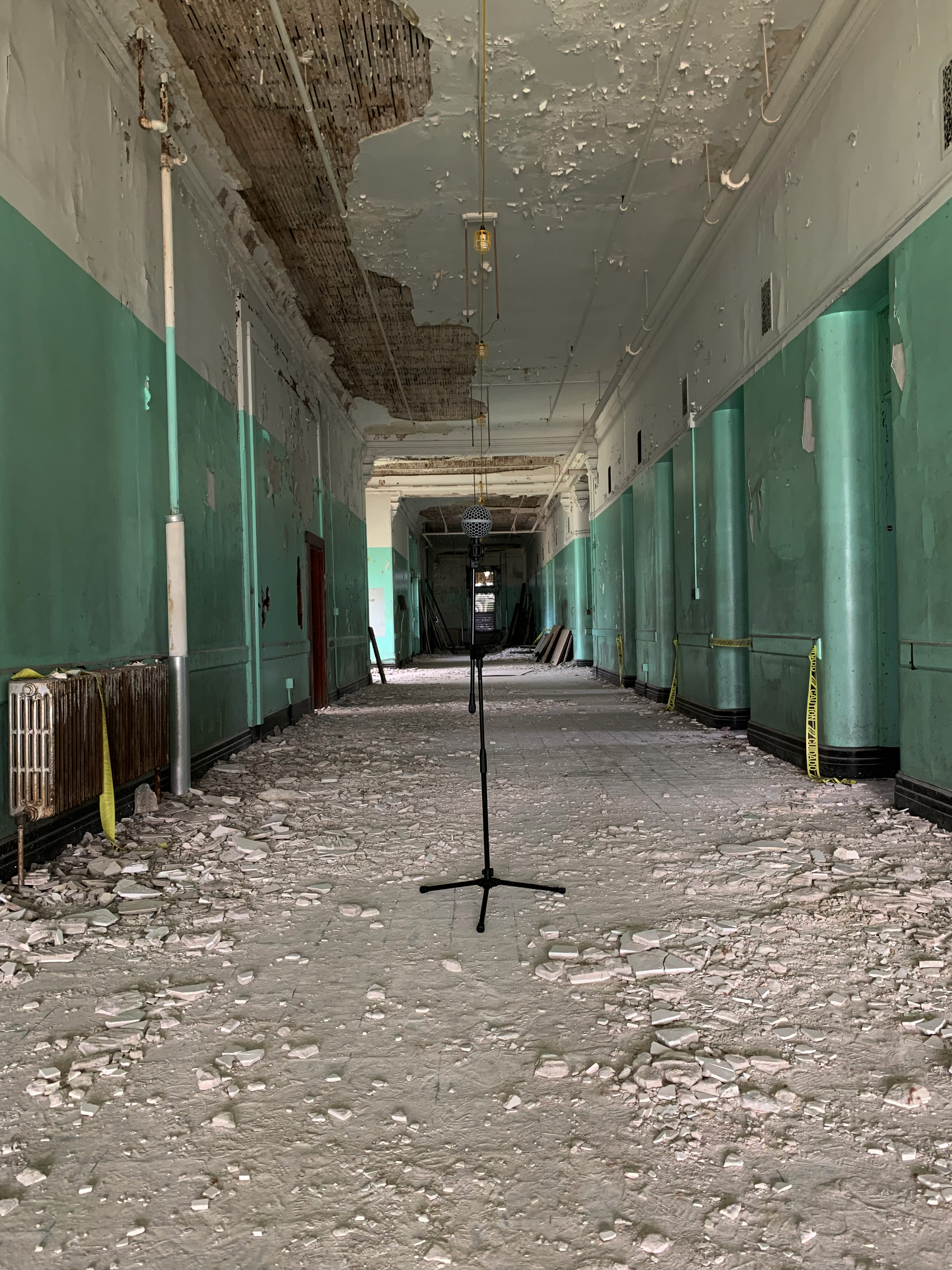 Microphone set up in (Male Ward B, Corridor) west-facing view